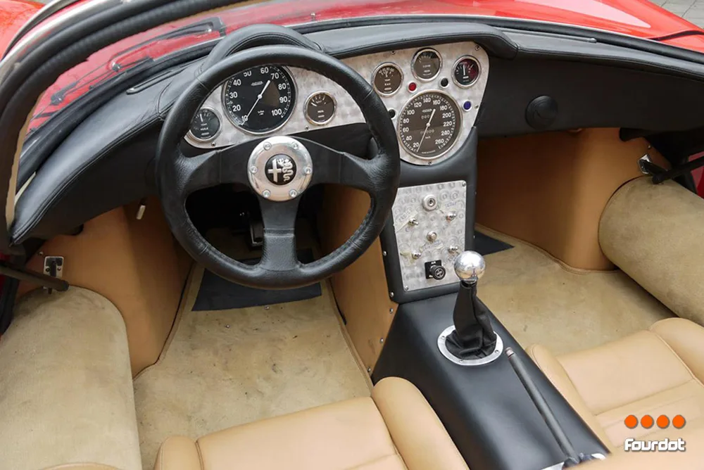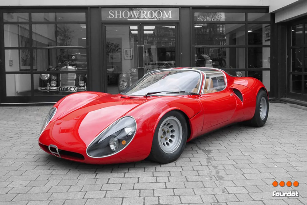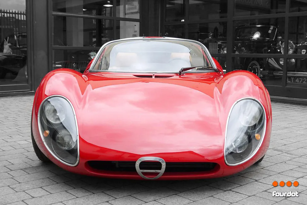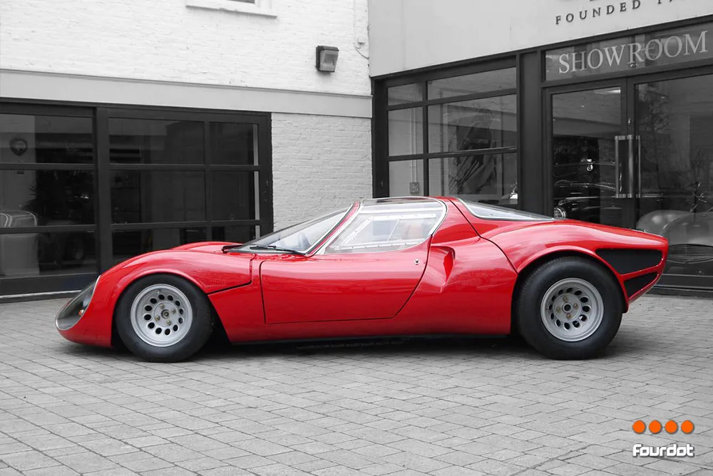 Designed by Franco Scaglione it was designed to bring Alfa Romeo back into the endurance sports car racing and had both race and street legal versions. The street legal version uses aluminium for its body and chasis and was the first production vehicle to feature butterfly doors.